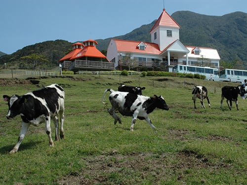 高隈山麓南西側の標高500mにある面積71haの市営牧場です。「アルプスの少女ハイジ」を連想させる風景と緑のじゅうたんの上に、ホルスタイン120頭が放牧されており、雄大な自然と一体になれるリゾートゾーンです。